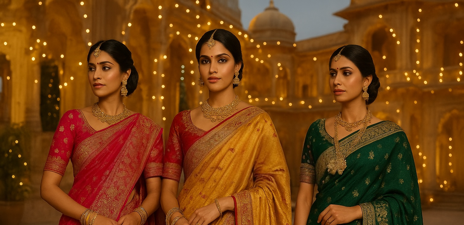 Kerala Kasavu Golden Tissue Plain Saree with Running Blouse | Saree length: 6.25 Meters | Blouse: unstitched material included